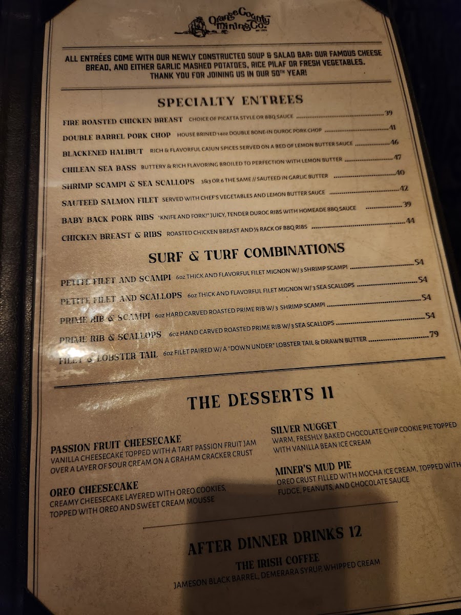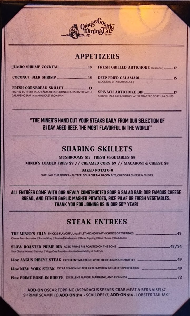 Welcome to Orange County Mining Co, a premier steakhouse nestled in North Tustin, California. Known for its stunning views and a unique underground mining decor, this restaurant provides an unforgettable dining experience. The menu features an array of mouthwatering dishes that showcase the best of steak and seafood.