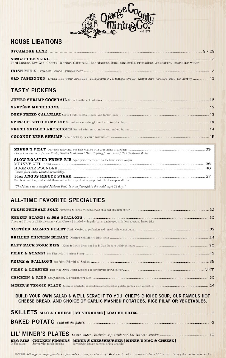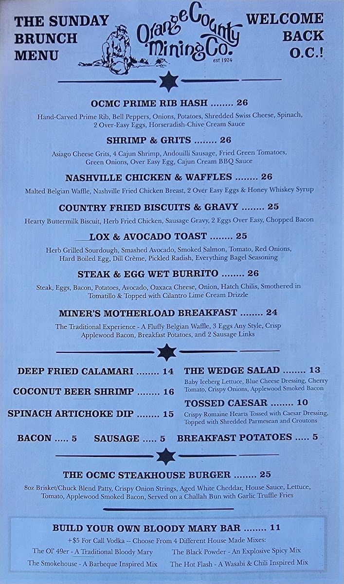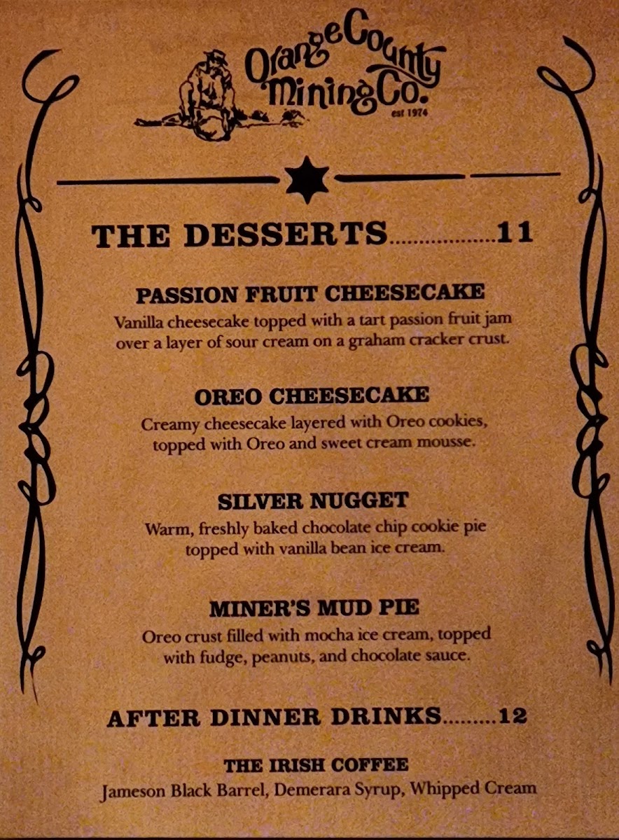 Orange County Mining Co Menu